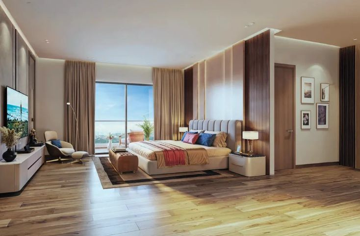The 3 BHK flat features three comfortable bedrooms, perfect for families or individuals needing extra space for a home office or guest room. The living room is bright and airy, providing a welcoming space for relaxation and entertainment. The kitchen is modern and well-equipped, allowing for effortless cooking and meal preparation.